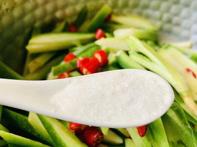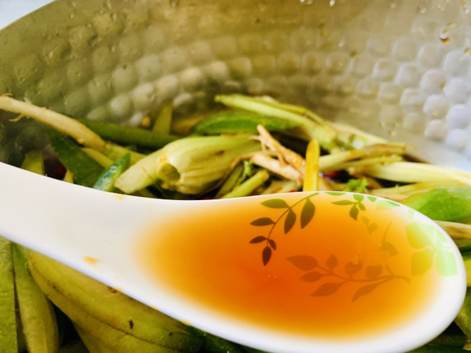 半勺蠔油,蠔油可以提鮮,而且帶一點點的甜味,我們就不需要放糖瞭。
