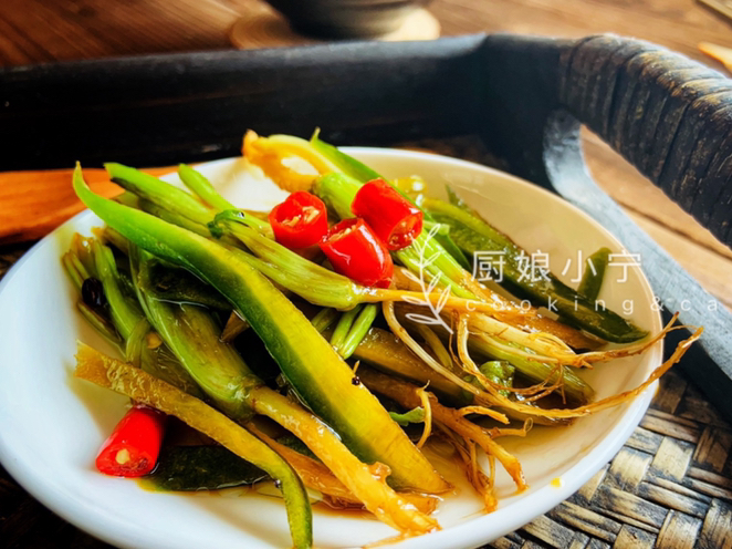 這道菜不光可以用蘿卜皮,香菜根。其他可以生食的比如白菜頭,芹菜頭,大筍葉子,水蘿卜纓。都可以做。