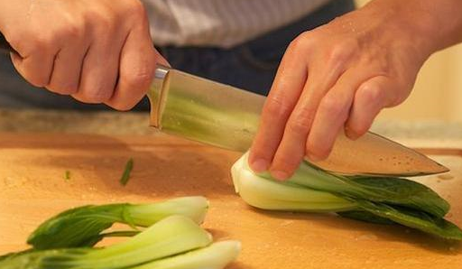 油菜菜心對剖,櫻桃蘿卜切成薄片。五花肉就切成大概8毫米左右的方丁狀,每塊肉丁切的時候最好都要連著一些肉皮。這是考驗大傢的刀工瞭。