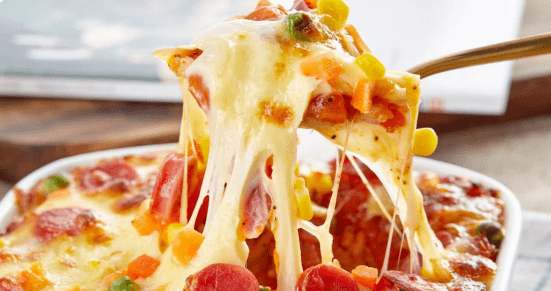 今年1月,必勝客優選也推出瞭芝士焗飯新品,有奶油蘑菇雞肉焗飯和意式番茄牛肉焗飯兩種口味,同樣微波4分半叮出拉絲焗飯。