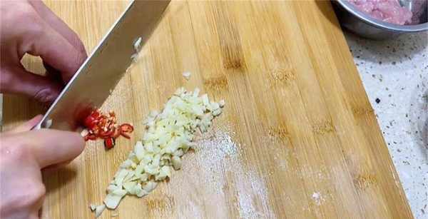 3、再準備一塊豬肉,最好是肥瘦相間的,先把它切成小塊,再改刀剁成肉末,剁的越碎越好,或者直接放進絞肉機中攪成肉末。