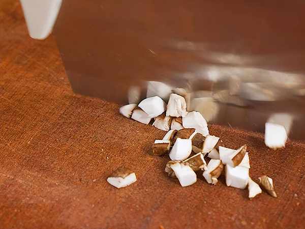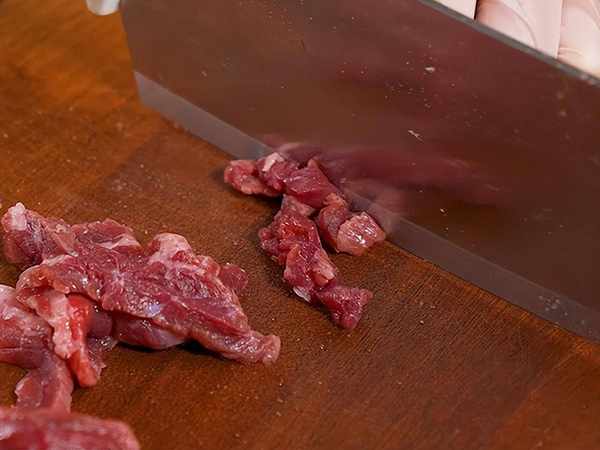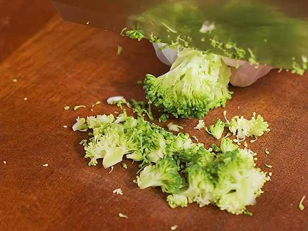 2、番茄,西蘭花,香菇洗凈切成碎末,處理好的牛肉剁成肉沫。