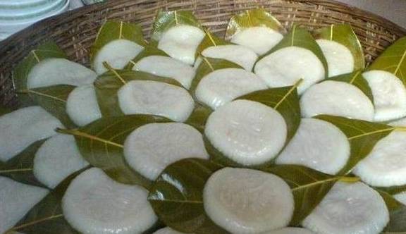 葉貼。這個在南方也是比較常見的,他用的是樹菠蘿的葉子,以來是為瞭防止拿的時候燙手,還有就是葉子還有一些藥用功效呢,可以解毒消腫,所以這個也是為何會沒有被替代的原因,吃這個你要是喜歡甜一點,還可以在上面撒一點白糖!