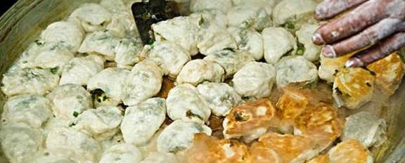 農村集市上的扒糕可是一絕,芥麥面蒸熟後切成條,再用香油,蒜汁,陳醋調成蘸汁。吃扒糕不用筷子,都是用竹子做成的小叉子。一口扒糕,沾著調好的蘸汁特別爽口。扒糕是農村獨特的小吃,一般的地方是吃不到的。