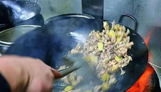2、將100克豬油放入鍋中,加熱至40%熱。加入“陰蛋”75克,翻炒至起沙。使用防漏過濾器將破損的雞蛋撈出。鍋底剩下的就是蛋油,加入蒜末。、罐裝辣椒末各20克,小米椒圈10克,炒出香味後,倒入雞胗、雞腸180克拌勻,加入蠔油、雞精各5克、鹽,生抽,麻辣鮮露,用3克老抽中火炒勻,加入25克蒜苗翻炒幾下,倒回打碎的雞蛋,翻炒均勻即可食用。