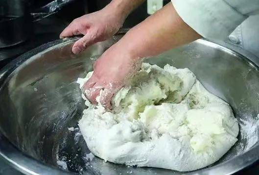 3.面團混合均勻後加入豬油
