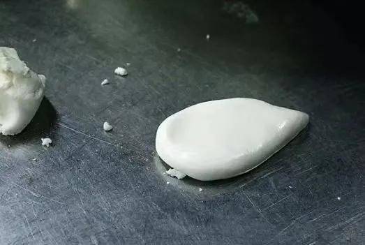 將400克清面放入鍋中,加入500克開水攪拌成糊狀,加入200克白糖溶解,加入150克椰漿,750克糯米粉,加入750克糯米粉分批冷水,和成光滑的面團。加入豬油200克拌勻,每粒擠成35克,修整成水滴狀,即成油餅。
