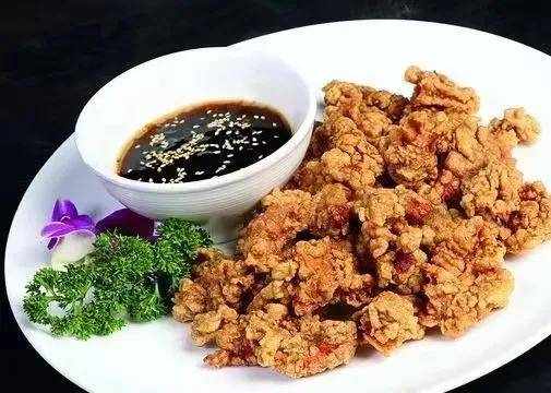 2.鍋裡油燒到40%熱時,倒入打好的肉條,炸至定型,撈出,待油溫升到70%熱時,再炸至外皮酥脆裡面又軟又美。