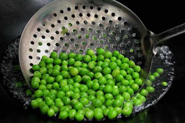 2.處理好的豌豆,直接放入幹凈的炒鍋內,然後在裡面加入適量的清水。放入精鹽食用油調味。蓋上蓋子用大火煮沸十分鐘。放食用油煮出來的豌豆翠綠不發紅。煮好之後立即撈出控水。