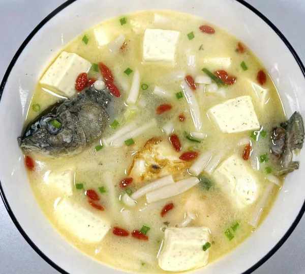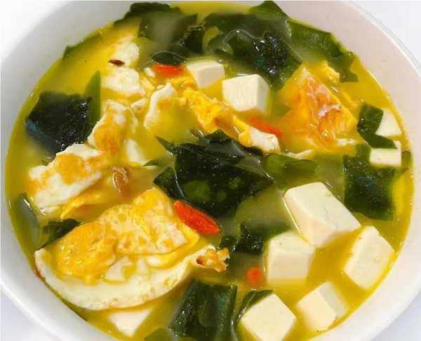4、加入美豆腐塊、10顆枸杞繼續煮10分鐘,加鹽調味即可。