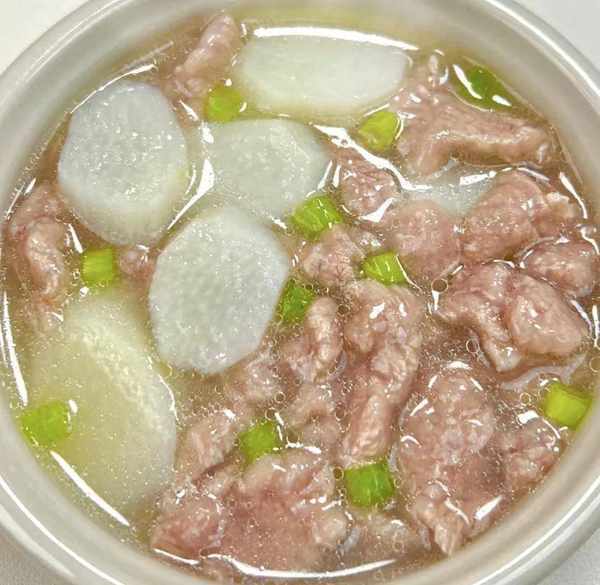 3、轉小火放入牛肉片,煮2-3分鐘,加鹽、蔥花調味即可。