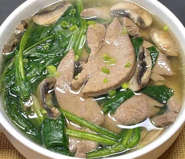 3、放入豬肝煮5分鐘,撈去浮沫。