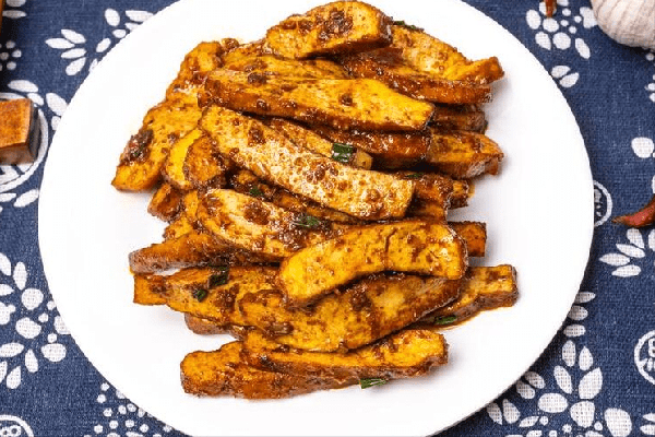 配方:豆腐幹、鹽、白糖、辣椒粉、孜然、醬油、大蒜