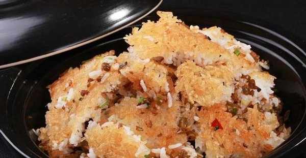 鍋巴是燜飯時緊貼著鍋結焦成塊狀的一層飯粒。主要原料有大米、小米、黃豆、玉米粉等。有厚腸胃,助消化的食用功效,但胃弱者及慢性胃炎、不思飲食者不宜食。