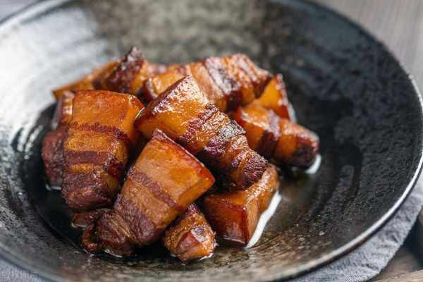 調味是制作紅燒肉的關鍵之一。在炒好糖色後,添入清水,淋入米酒,加入南乳、柱侯醬、香葉等調料,然後將五花肉放入鍋中,小火慢燉30分鐘左右。這樣做可以使紅燒肉更加入味、軟爛Q彈。