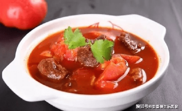 3,一小時後,加入大塊西紅柿,再燉半小時至牛肉軟爛為止。最後撒上香菜,即可出鍋。