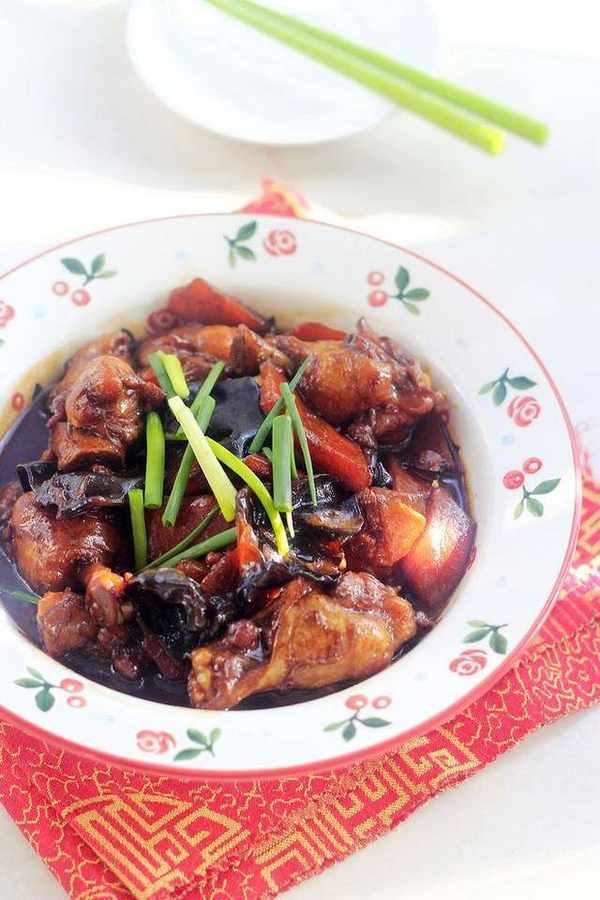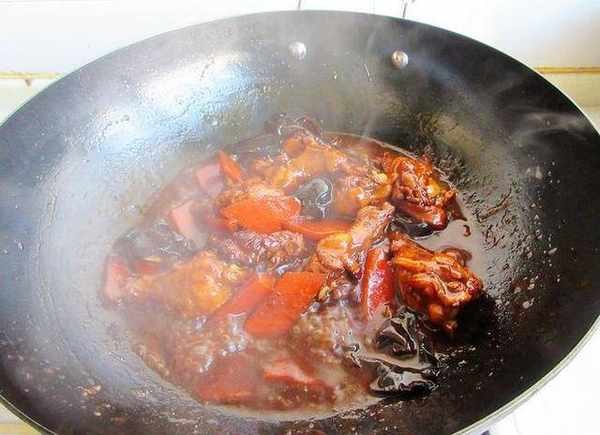 10、燒到雞翅熟透,胡蘿卜入味熟透以後,就嘗嘗味道,如果不夠味,可以加鹽,因為甜面醬有咸味,看你加的量多少