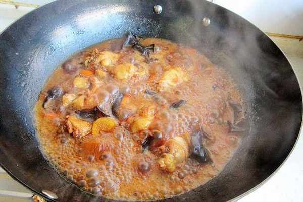 9、加鍋蓋轉中小火燜燒15分鐘左右,中間可以翻炒幾次,這樣雞翅根易熟透均勻