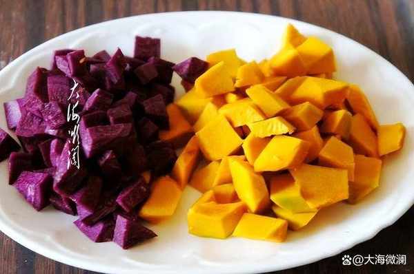 紫薯南瓜分別去皮去瓤洗凈切丁。