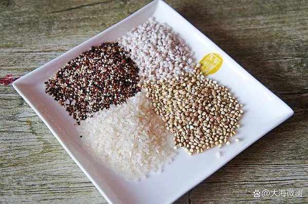 大米、青稞米、三色藜麥米、蕎麥米、糯米淘洗幹凈。