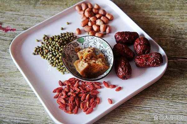 食材:三色藜麥米、大米、糯米、青稞米、蕎麥米、綠豆、大棗、枸杞子、花生米、老紅糖各適量。