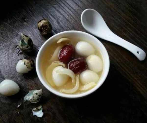 【材料】馬蹄、鮮百合、鵪鶉蛋、枸杞、冰糖