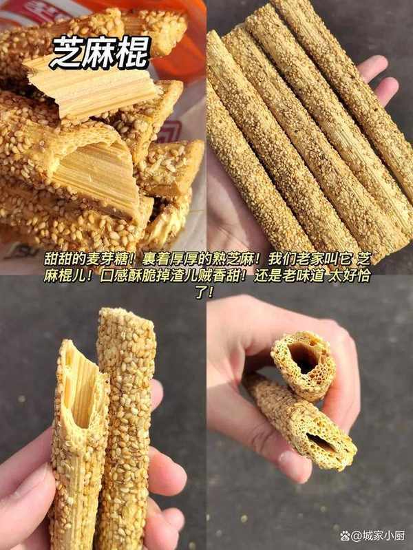 是甜甜的麥芽糖,裹著厚厚的熟芝麻,我們老傢叫它芝麻棍兒,口感酥脆掉渣兒,賊香甜還是小時候的味道。