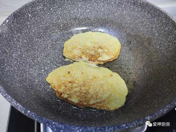 5.煎煮之後用鏟子給它們翻個面,然後把鍋裡面的香蕉煎煮至兩面微微焦黃,煎煮好後的香蕉餅取出放在一旁備用。