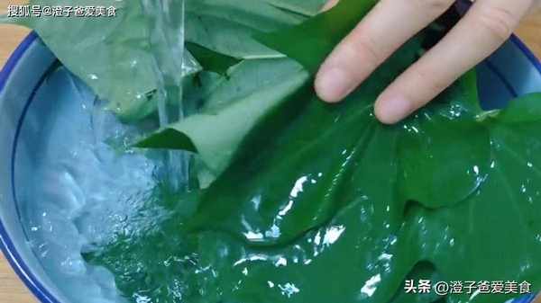 1.把紅薯葉放到盆裡,加入一勺食鹽,一點小蘇打,倒入清水,把紅薯葉清洗幹凈,把紅薯葉老的根部切掉一點,再切成七公分的長度。要把桿和葉子分開裝,