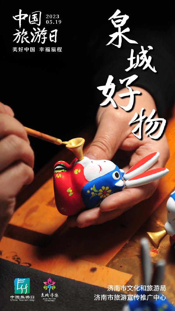 “泉城兔子王”是泉城濟南一張傳統而鮮活的非遺IP名片,以黃河細膠泥為原料,有十幾個品種,分為不同系列,有濃墨重彩的武將兔,有精致可愛的兔寶寶,還有節慶系列的鼓樂兔寶。