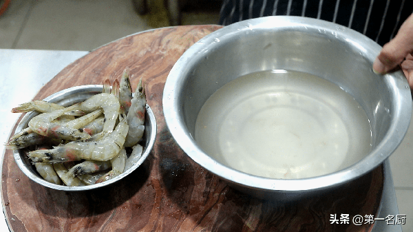 1.準備大蝦一斤左右,用剪刀剪去蝦腳和蝦須,在蝦背的第三節處挑出蝦線。將蝦背片開,使大蝦更方便入味,倒入盆中,用清水洗凈,放入另一個盆中備用。