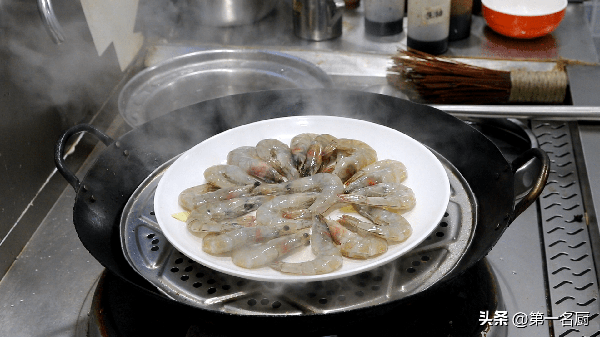 3.鍋內燒水,放上篦子,等水燒開之後,放入大蝦,開大火連續蒸五分鐘。在蒸制的這個時間,我們準備一下蘸料汁。