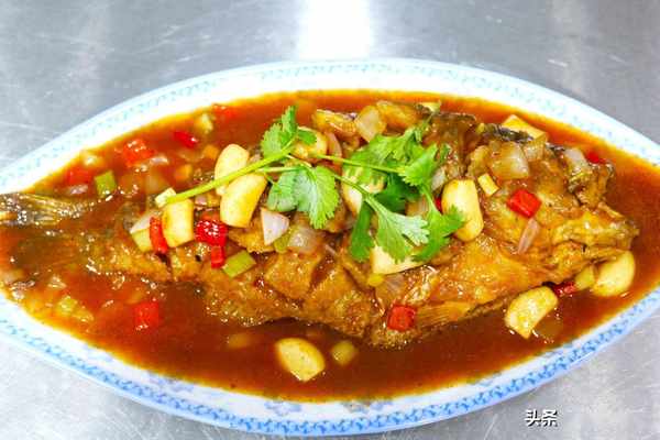 5.開大火燉煮兩分鐘左右,勾入少許水淀粉,再淋入少許明油,使菜肴更加鮮亮,翻勻以後即可關火起鍋盛入盤中,再把湯汁澆到魚盤中,放上香菜點綴,美味即成。
