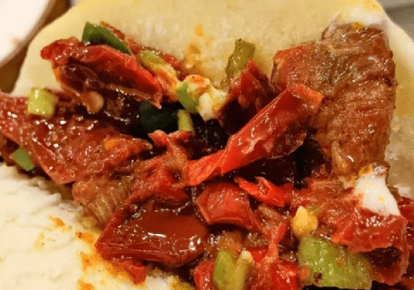 四:新疆手抓飯,一般情況下,米飯跟羊肉一塊吃會很膩,但它這個沒有,胡蘿卜遇到羊肉,煸出瞭不一樣的香味兒,再加上米飯的彈性,粒粒分明,再配上點兒小辣椒,去膩增香,飯量大的北京人,一口氣吃一盤兒不成問題。