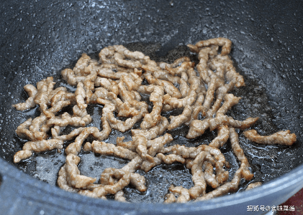 2、準備一塊鮮牛肉,改刀切絲,加入食鹽、料酒、黑胡椒粉、植物油、蛋清和少許淀粉,下手抓拌均勻,醃制一會兒,去腥入味,口感變換嫩的關鍵,起鍋燒油,倒入肉絲翻炒變色。