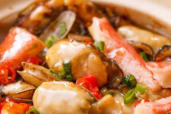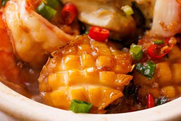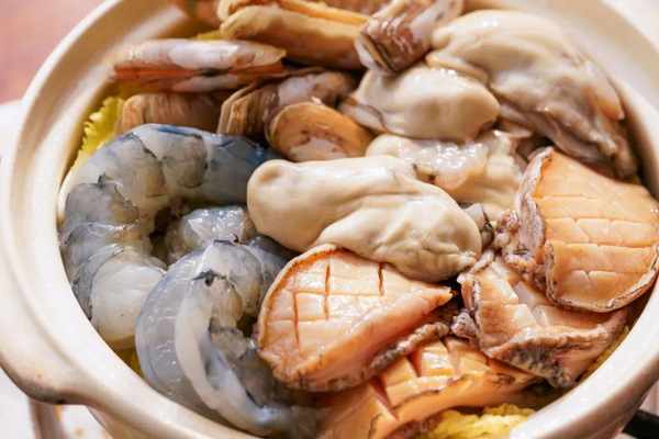 我這次比較講究,用五花肉片煸出的油打底,揭蓋後香味驚人。鮑魚和蝦仁Q彈、生蠔和蟶子肥嫩,配上吸滿湯汁的粉絲,剩餘的湯汁可以下飯,安排得明明白白。