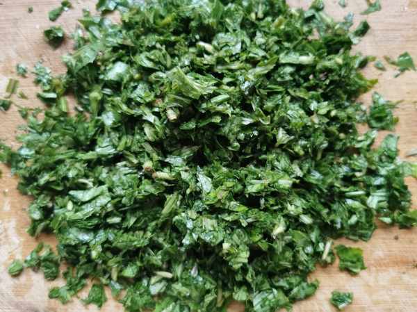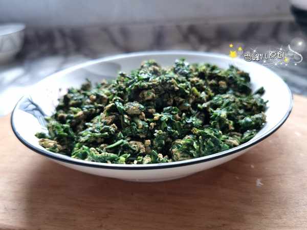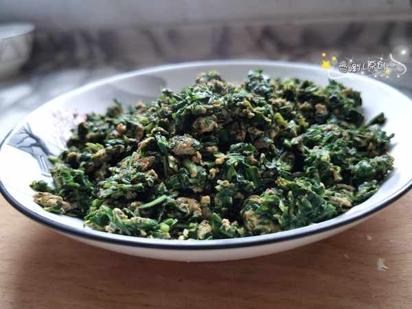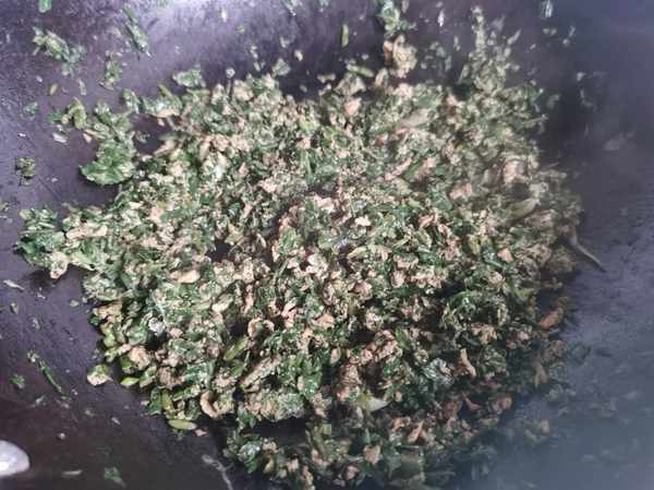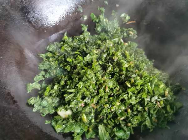 鍋裏燒熱,加入少許花生油,葱末爆香,放入曲曲芽。