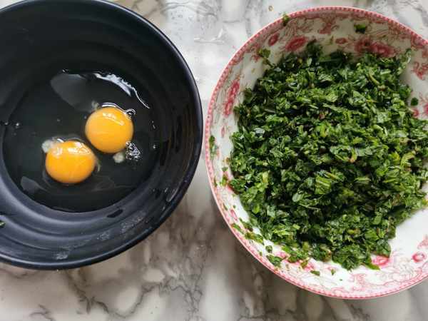 雞蛋打散。我們今天做的就是曲曲芽炒雞蛋,做法很簡單,但是一個小訣竅可以讓炒出的菜肴噴香不腥氣。