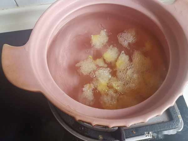 砂鍋中加入清水,放入泡發洗淨的銀耳,大火煮開。