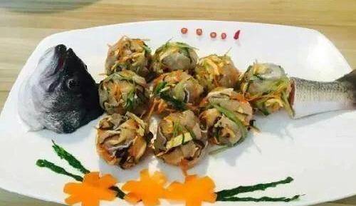 1、冬菇、冬筍、火腿、肥肉膘均切成細絲。魚從下嘴巴剁開,用刀背一拍,讓魚扒下,再從尾順著骨頭將肉片下,剝去皮,魚的骨架保持原樣放入盤內,魚頭要扒著。