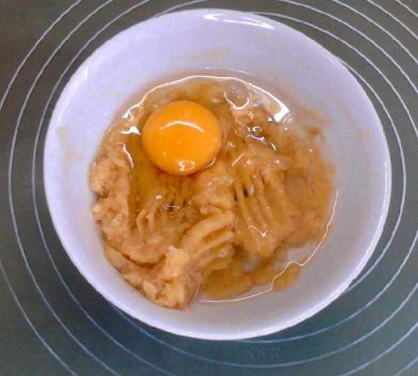 原料:土豆、鮮雞汁、雞蛋、黑全麥自發粉、水、蔥、黑胡椒碎、泡打粉。