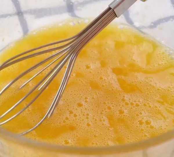 第1步、把兩個雞蛋磕進碗中,放入糖粉、食鹽攪拌均勻。