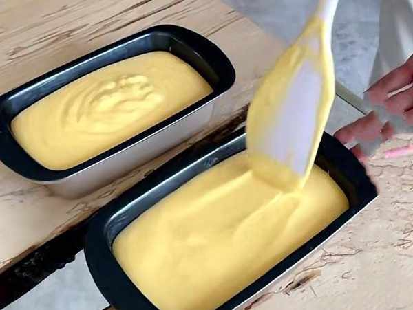 接下來,我們取一點黃油,擦在模具上面,其實這樣比用烘焙紙好,烘焙紙也挺麻煩的。好瞭,我們把面糊倒入模具裡,用小刮鏟刮平整,左右晃一晃,我們把弄好的面糊放到烤箱裡,我們先180℃,我們先來個15分鐘,一會兒我們先看一下蛋糕顏色,然後再加時間。