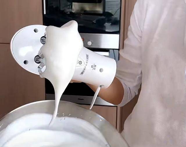 接下來,我們就準備開始做瞭。首先我們要準備6個雞蛋,先把蛋清和蛋白分開,最後的第6個雞蛋我們隻取蛋黃,所以最後就是6個蛋黃,5個蛋清。我們打蛋黃的時候就不要偷懶,如果你用電動攪拌器打蛋黃,它轉速比較快,就很容易把蛋黃裡的氣泡給打出來,這樣做出來的蛋糕就會不夠細膩,所以建議我們還是要用手動打蛋器把蛋黃打出來,最後要把蛋黃打到有點掛在攪蛋器上面的感覺,接著再打個半分鐘吧,就好瞭,放在一旁備用。