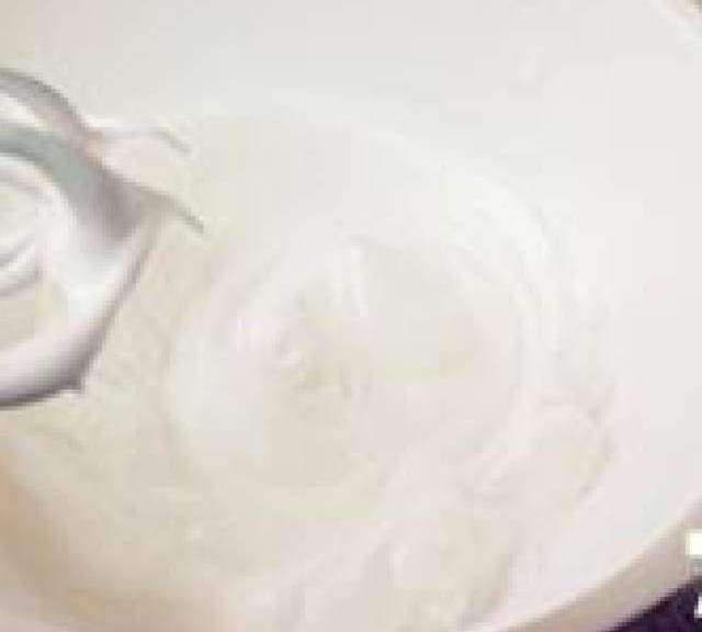 第7步、烤箱180度預熱。蛋白分三次加入60g白砂糖用電動打蛋器打至九分發,有彎鉤