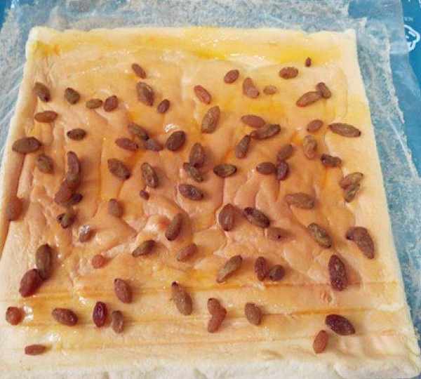 原料:蛋黃、細砂糖、鹽、色拉油、水、低粉、蛋白、細砂糖、葡萄幹、果醬。