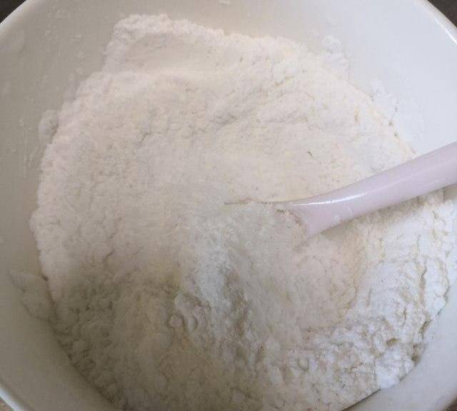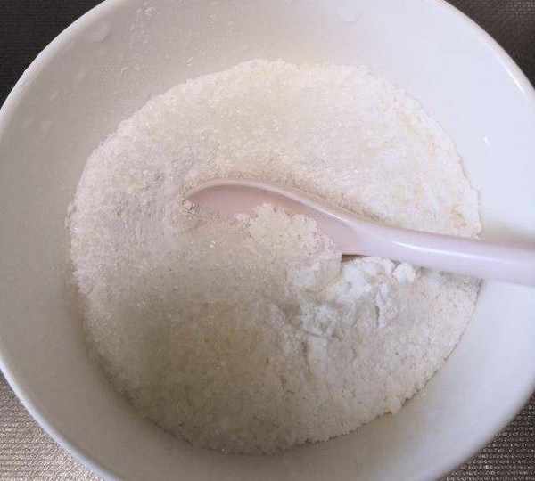 第2步、糯米粉加白糖淀粉,混合均勻。