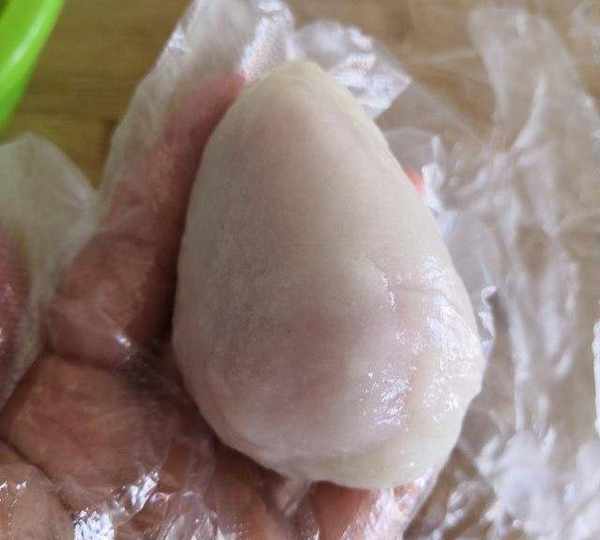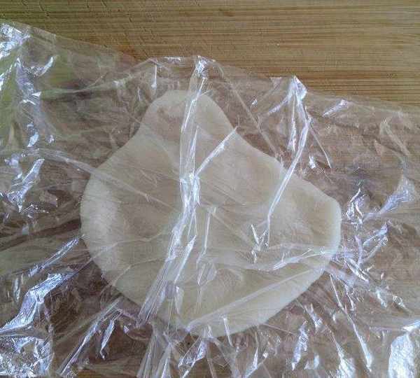 第11步、準備兩張保鮮袋,把糯米團放中間,用搟面杖輕輕搟開。
