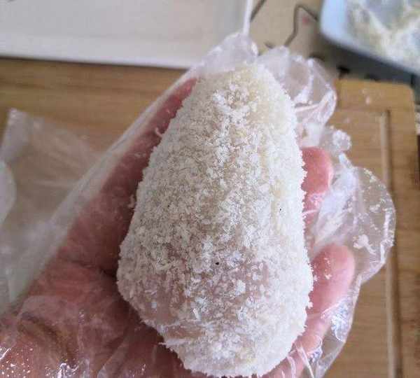 原料:草莓、糯米粉、淀粉、白糖、椰蓉。