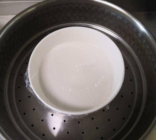 第6步、蓋保鮮膜,紮幾個洞,上蒸鍋蒸二十分鐘。